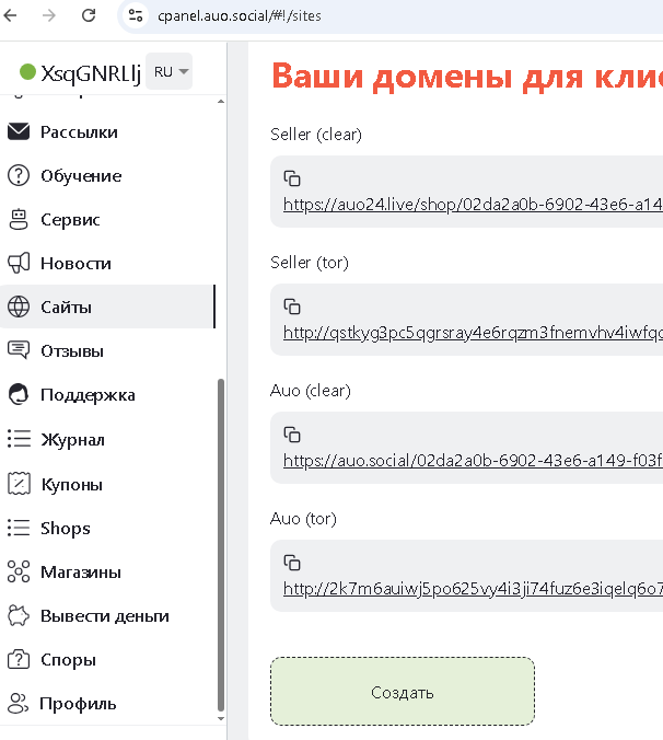 Если вы всё сделали верно, у вас будут ссылки на панель управления вашим магазином, клирнет или тор, а также пароль с логином.