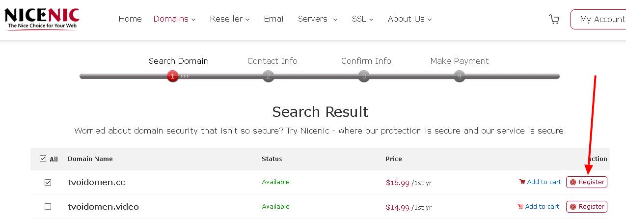 2. Зарегистрируйтесь у регистратора домена