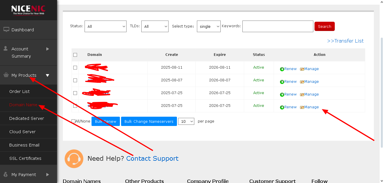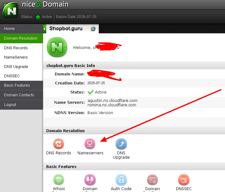 Перейдите на сайт, где вы купили домен, и найдите раздел редактирования NS (Name Servers).